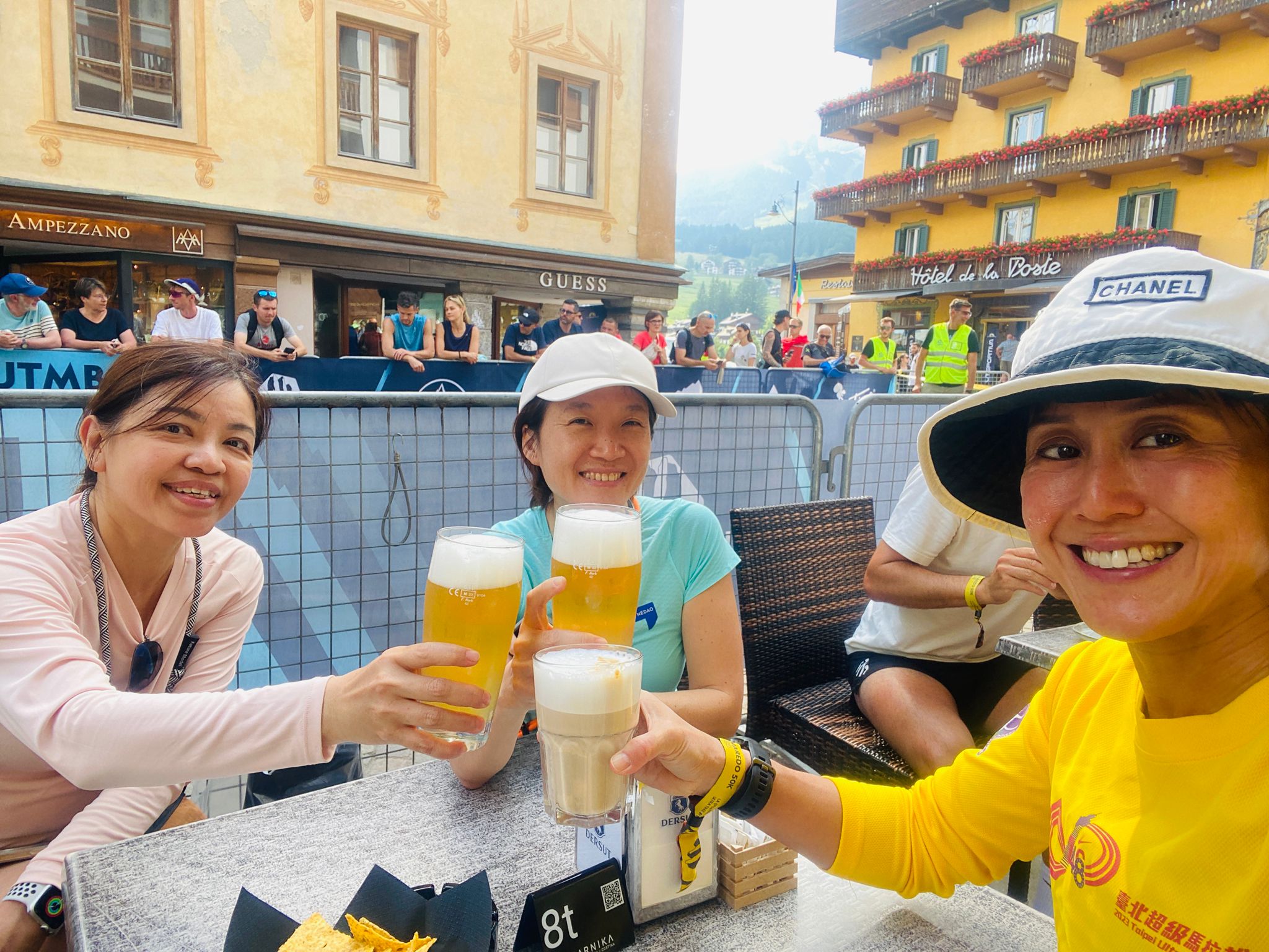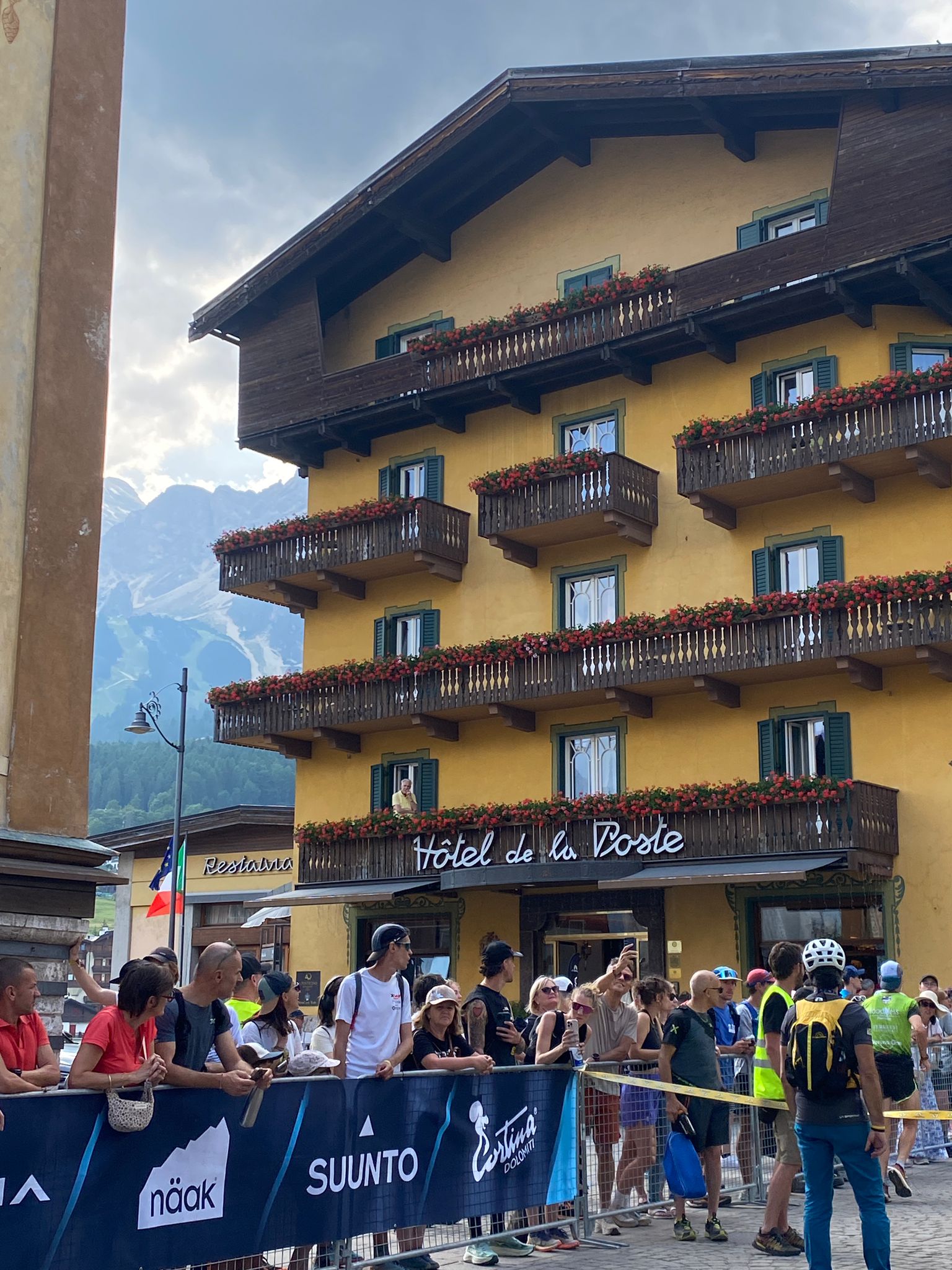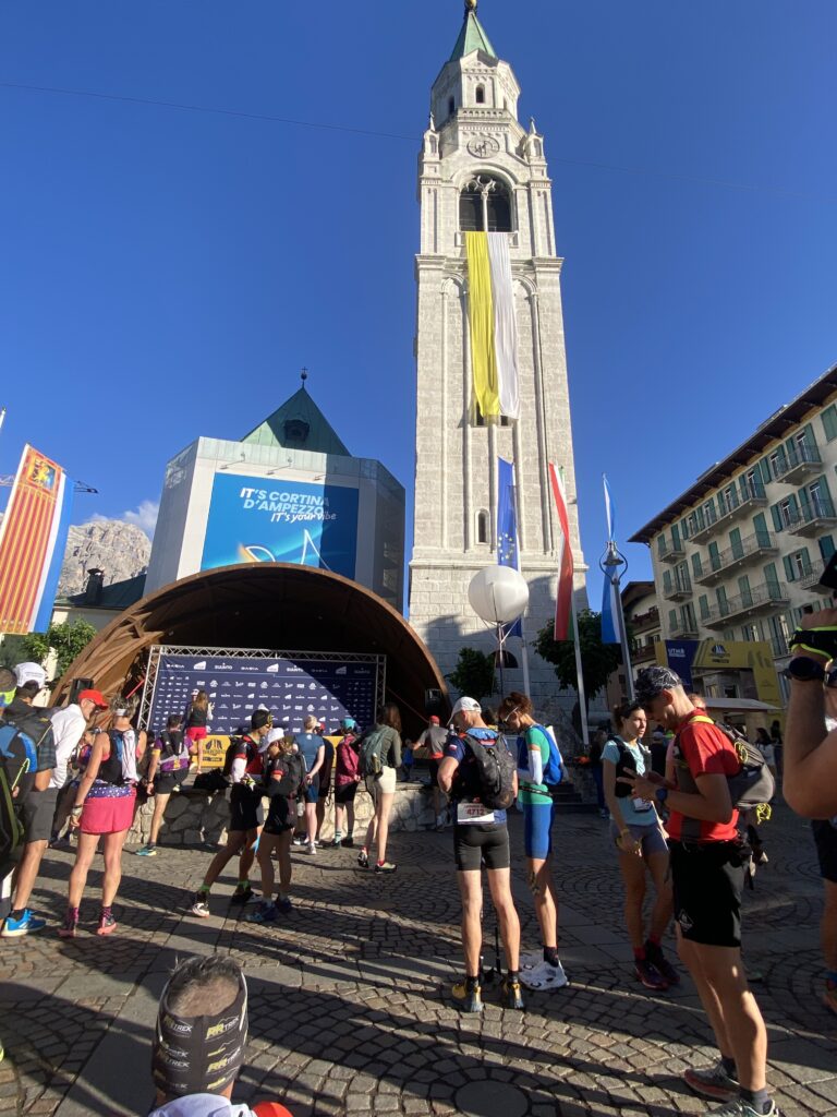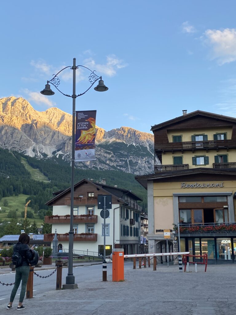 This was my Itenary, the second place was the last stop before heading all the way to Venice. There was one stop at Venice for toilet break and then all the way to Cortina. The bus stops at the very centre of the town in front of the church tower. This time I splurged on the hotel and stayed at hotel Alaska costing S$370 , could not find any Air BnB around and also any sharers for the room so I ended up paying the hefty for this one. But that’s okay as I stayed in a hostel in Milan and saved some there. The hotels in the town area are all pretty expensive but its most convenient to absorb in the race vibes where all the sports shop in the street has everything to do with the race and also bars and restaurants were bustling with runners. You could also cameo with the celebrity trail runners too as they were doing some familiarisation runs with the participants.