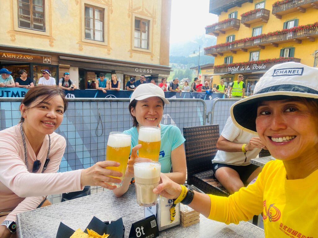Race Pack collection was at the Stadio olimpico del ghiaccio ice skating rink. It does not open in summer period so it was the best place for the bib collection and race expo. The expo is crazy with a lot of stalls selling trail sporting good and running gear. There were also marketing for other Italian trail races. I met my tortoise run friend, Pei Hua there as she was going for a hike with her friends. It was fun, me her and her friend, Joanna met at the expo and the both of them end up more shopping than me! Then we made our way to the main strip where the start line was. We saw the flag off for the 10 km as it was summer the sun does not go down till 9pm, the flag off was 6pm so there was ample time to finish before the sun goes down. The whole town was bustling with runners and all the trail vibes. Many of the Italian brands like La Sportiva , Scarpa etc were handling swags and also giving big discounts for their items. Can say the feeling is very different especially when almost everyone in the town is joining the race. Can feel the exhilaration.