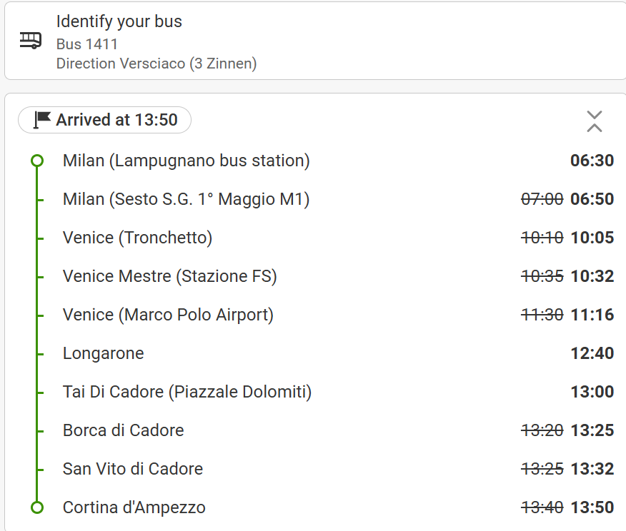 From Milan there is one direct bus by Flix Bus morning 6:30 am from the Lampugnano Bus Station. To get there I got a Taxi from my hostel. It cost about 25 EUR, more expensive than my ticket to Cortina but there were no public transport from the town earlier than that. Later I found out that there was another stop at a later time.