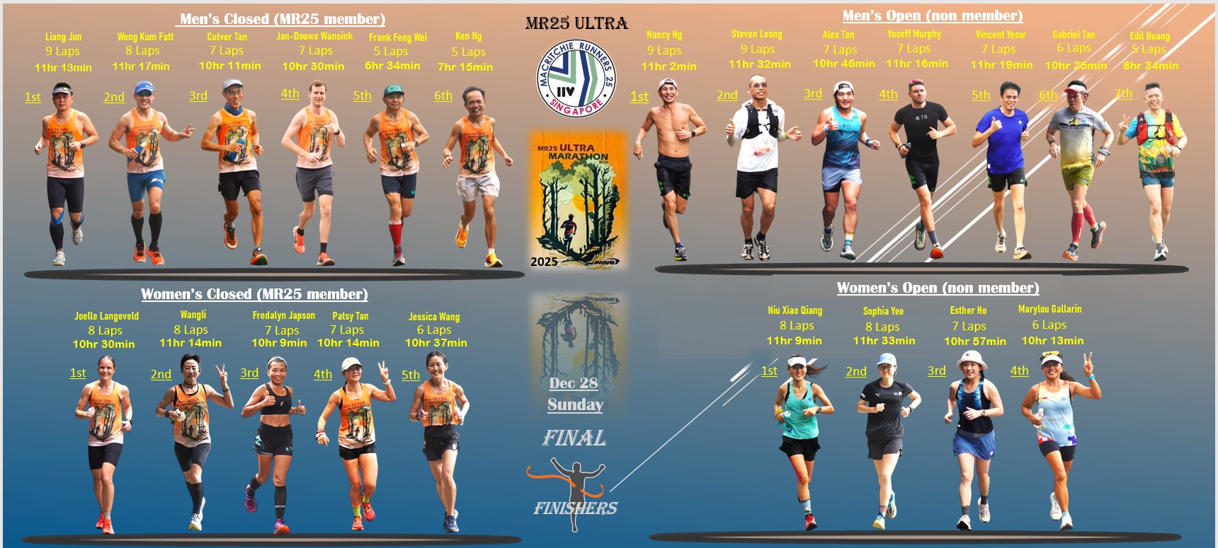 After the 6th round, I checked the watch and felt that pushing for a 7th is impossible given my sciatica problem and also the legs are getting kinda tired. Kum Fatt passed me 2 times this round and he was grappling with the planta problem ended at 7 rounds. It was really fun and great times getting together with the runners and people with like minds to end the year. For my category, every was a winner and I again came in 5th. Very grateful to MR 25 for this opportunity again!