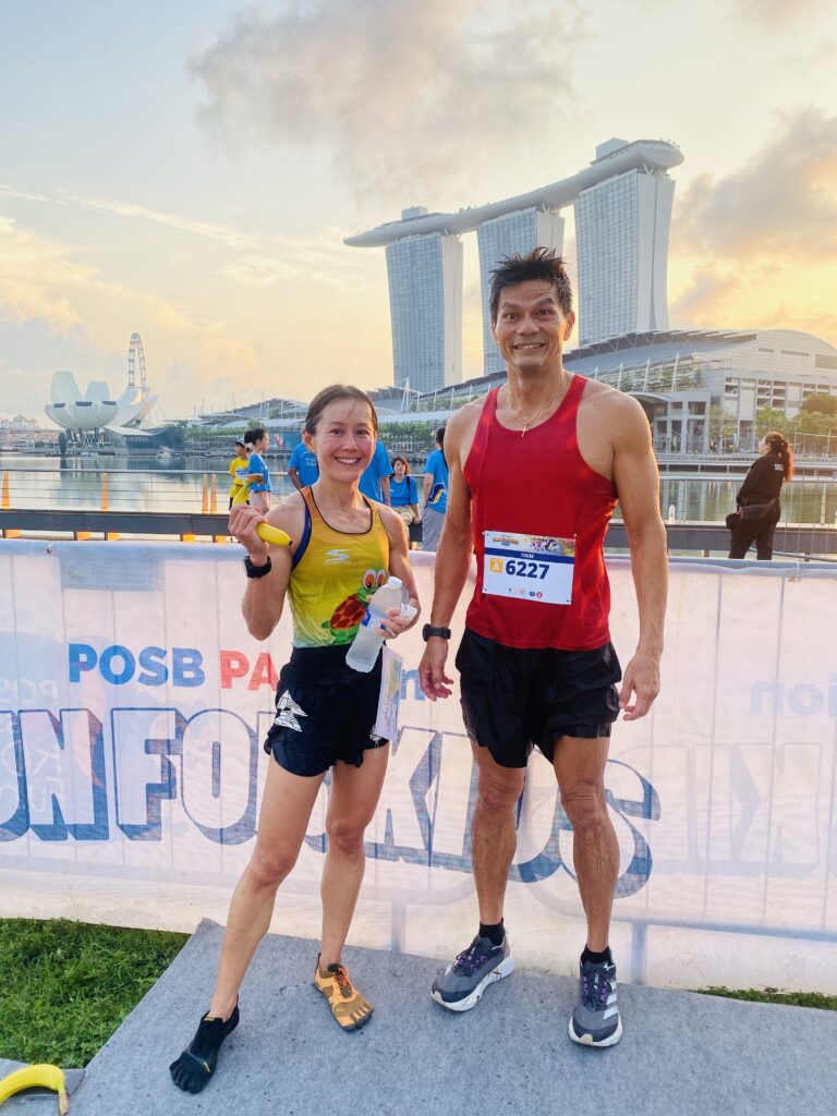 I saw Richard after he U turned but did not managed to see Kevin at all. Since there were water points around I did not bother to prepare my own hydration. Was so glad when I was at Marina bay sands and saw the Promontory ending in front. Still with my last bits of energy, I charged through the finish line after 2 guys in front.